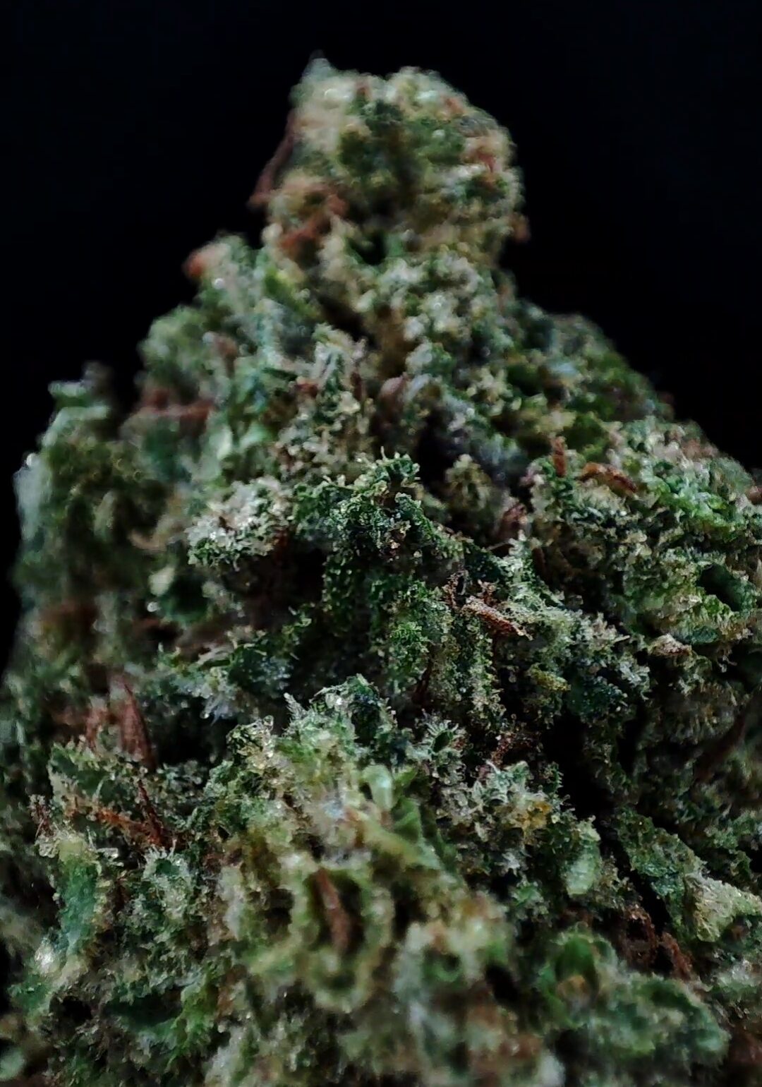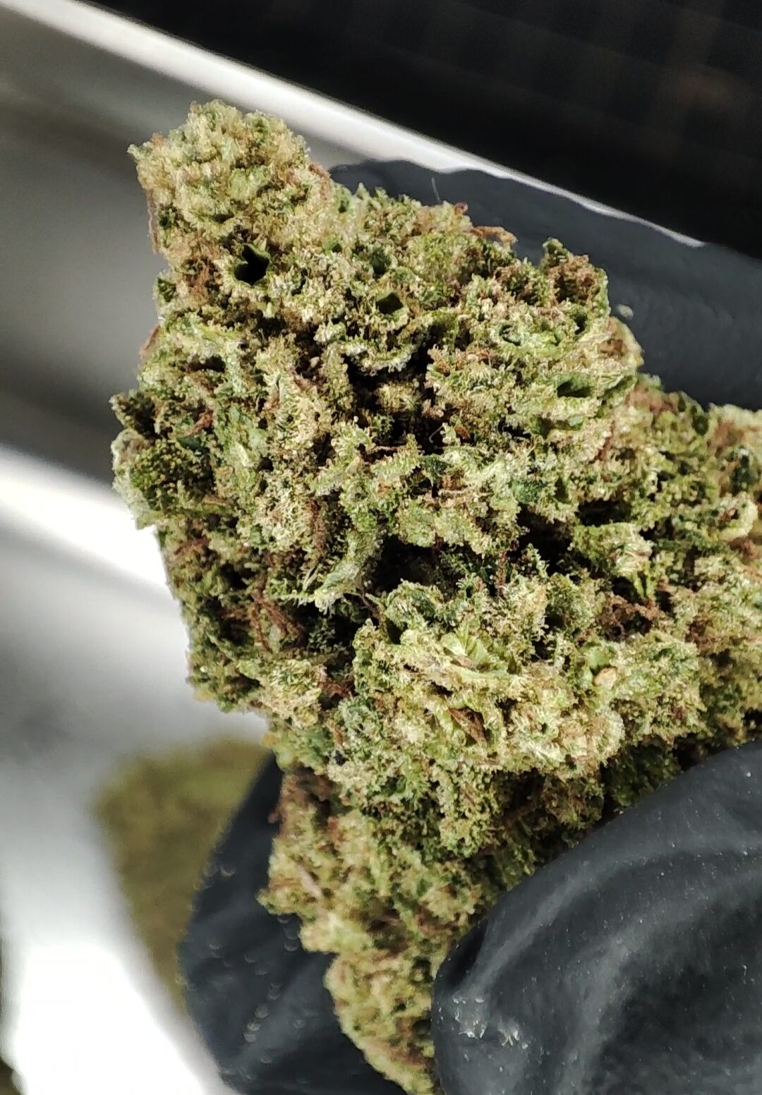 Des têtes bien vertes, brillantes, pleines de trichomes, collantes à souhait. Un profil fruity pepsy.